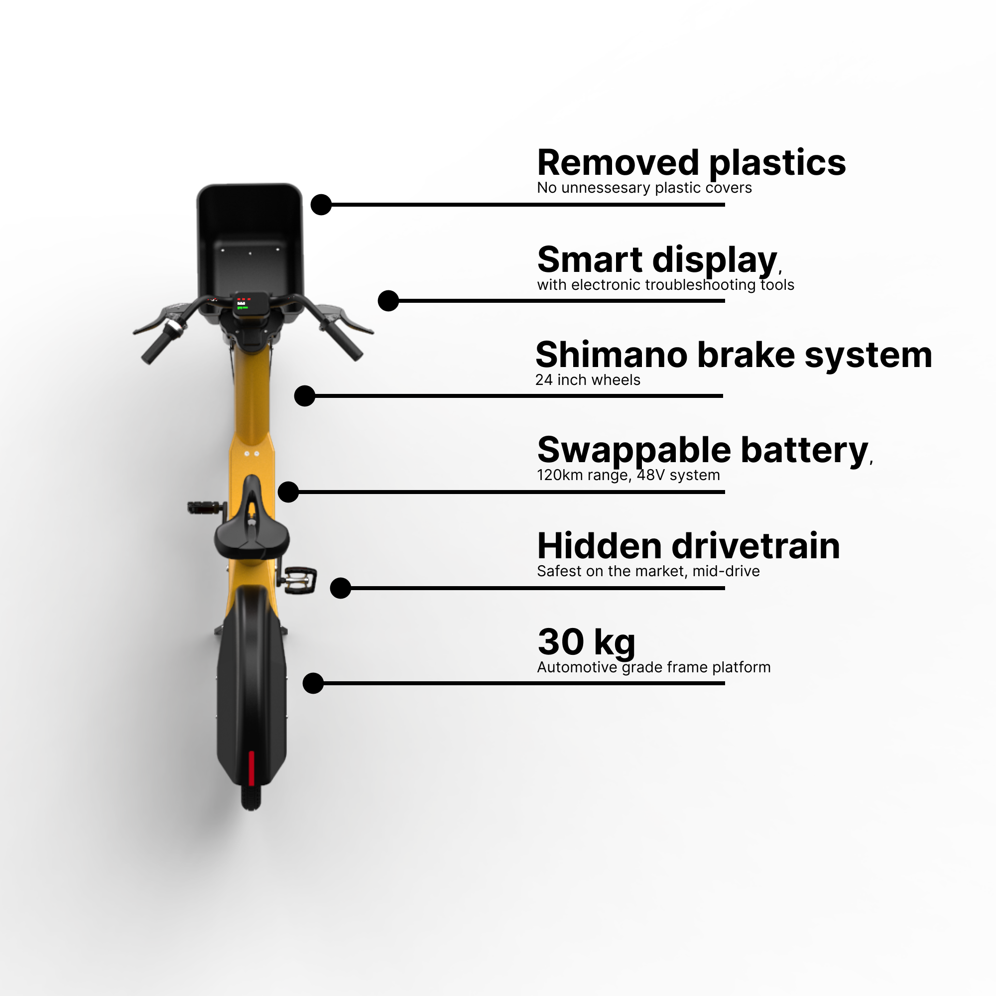 - ILUS low-step frame features a hidden drivetrain and a simplified maintenance approach. - This frame is fully configurable to ILUS regular and ILUS public.